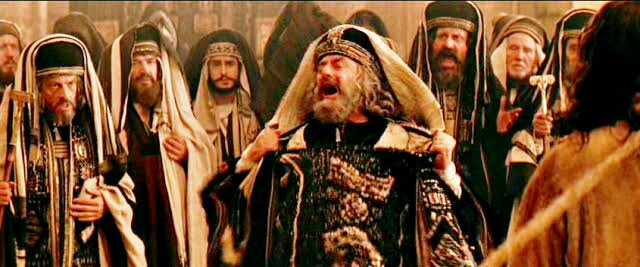 Então, o sumo sacerdote rasgou as suas vestes, dizendo: Blasfemou! Que necessidade mais temos de testemunhas? Eis que ouvistes agora a blasfêmia! Que vos parece? Responderam eles: É réu de morte. Então, uns cuspiram-lhe no rosto e lhe davam murros, e outros o esbofeteavam, dizendo: Profetiza-nos, ó Cristo, quem é que te bateu! (Mat. 26:59-68). Ao morrer Jesus “[…] o véu do santuário rasgou-se em duas partes, de alto a baixo. (Mar. 15:38). “Ora, o essencial das coisas que temos dito é que possuímos tal sumo sacerdote, que se assentou à destra do trono da Majestade nos céus,” (Heb. 8:1) “O sumo sacerdote rasgou as próprias vestes para simbolizar que Jesus estava para ser condenado à morte. Esse ato também traduzia a indignação de Caifás e significava seu horror diante da suposta blasfêmia que diziam ter Cristo proferido, ao Se declarar Filho de Deus. A lei mosaica proibia ao sumo sacerdote rasgar suas vestes clericais (Lv 10:6; 21:10), porque aquelas vestes simbolizavam a perfeição do caráter de Deus. Rasgá-las era o mesmo que profanar o caráter de Deus, desfigurar Sua perfeição.